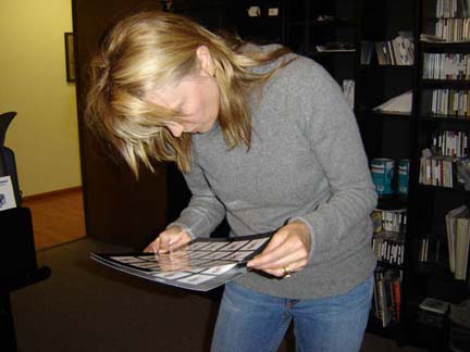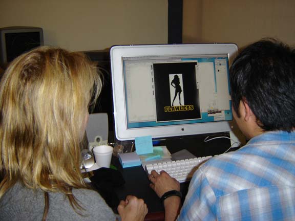 She had some images from a fashion photo shoot with Darrell Redleaf that intrigued her. She popped over to my office just as Warner, one of our artists, came back from work. They sat down at his computer and she described what she was going for. He scanned some of the images and we began to play with them. Lucy wanted to do something with light and shadow. Warner showed her a variety of filters over the photo she had chosen as the one she liked the best. At one point, to make a blank slate for us to play with, he put the cursor around the image we were looking at and hit a button and a silhouette appeared. We all stopped and stared at the screen. It was so cool! Then Lucy explained to Warner about the rest of the logo. Here, you can listen yourself. (click image to view QT version) (click here to view Windows Media version) This gave rise to two camps -- those that went for the humour of the play on Lucy's full name: And those that wanted the glamour version: Lucy, Warner and I couldn't make up our minds. We asked others in the art department. We went around the office showing both logos to everyone we could find. I got out a pad and began marking down the votes. I took printouts of both home for Christmas and showed them to all our holiday guests. It came out a dead draw. So we divided the shirt order in half and we're going to make both of them. Let's see what you think (grin) You heard Lucy talking about experimenting with the shirt styles. We decided two offer two kinds, both in black -- classic and a more form-fitting style. Both are for adults. No more junior and girl sizes like last time! I'll see if I can't get Lucy to model them again and, perhaps, pop in a few messages on the hems of a few of them. And I'll make sure she signs a sample of all the sizes. So there you have it, the birth of a shirt. We'll have them in time for the convention and then I'll put it up on the shopping cart. Contents of this webpage ©2005 Lucille F. Lawless/Sharon Delaney |