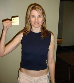 ![]() ![]() ![]() Who's Yo Mama? The Logo Shirt Lucy threatened, er, promised that she and I would model the shirts so you could get an idea of the sizes and how they fit. So, we here we be in all our sartorial splendor. It was a gray, foggy day in Los Angeles and I brought the shirts over to Lucy's house along with my digital camera. We spread the shirts out on her table and made post-its to hold up for the various sizes. Did we get goofy and silly? I'll leave you to judge that for yourselves. Tossing shirts to each other, popping them on and off and handing the camera back and forth, we got through all of them. Only for you guys would we have done this! (grin) Thought I'd also show you Lucy, down on her hands and knees, designing the logo. Click on the photo of her doing the drawing to see a video clip (QuickTime) of her explanation of the design. Click on the logo to view the Windows Media version. SPECIAL NOTE FOR THOSE ATTENDING THE FACTORY PERFORMANCE I'm going to take email orders for anyone attending the Factory show before I put up the shopping cart. As there won't be time to ship the shirts before the show, there will be no shipping charge. If you're going to the Factory performance, send me an email at lucylawlessfanclub@dslextreme.com with the subject: Factory shirt. Give me your name, style of shirt, color and size. I'll send you a confirmation email and information on how to send payment either through paypal or snail mail (money orders only). I'll hand out the shirts at the Factory and we can all march, en masse, into the ladies room and change! (grin) I will be putting up the shopping cart after Lucy's Factory show to start taking orders for the shirts from those not going to the show. The price of the shirt is $25.00 10% of the profits from the sale of the shirts will be going to a charity of Lucy's choice. ![]()